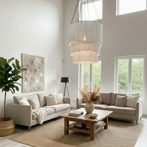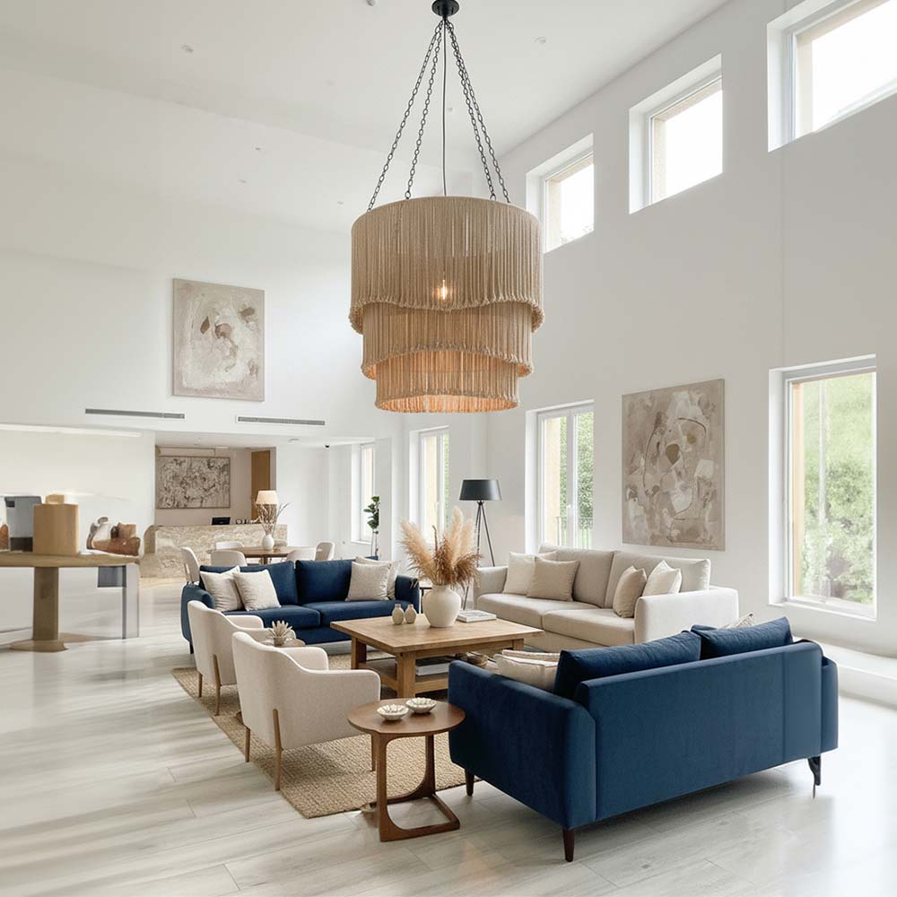Entre matières naturelles et design contemporain, nos suspensions et abat-jour en coton et raphia subliment chaque espace par leur douceur et leur authenticité.