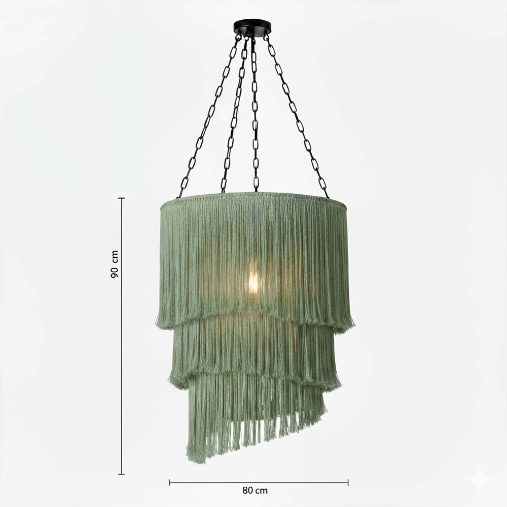 Composé de trois niveaux de franges tressées et soutenu par une structure en acier robuste, cet abat-jour allie style et durabilité. Sa grande taille, avec un diamètre de 80 cm et une hauteur de 90 cm, en fait un élément décoratif imposant qui attire le regard et apporte du caractère à votre décoration intérieure.