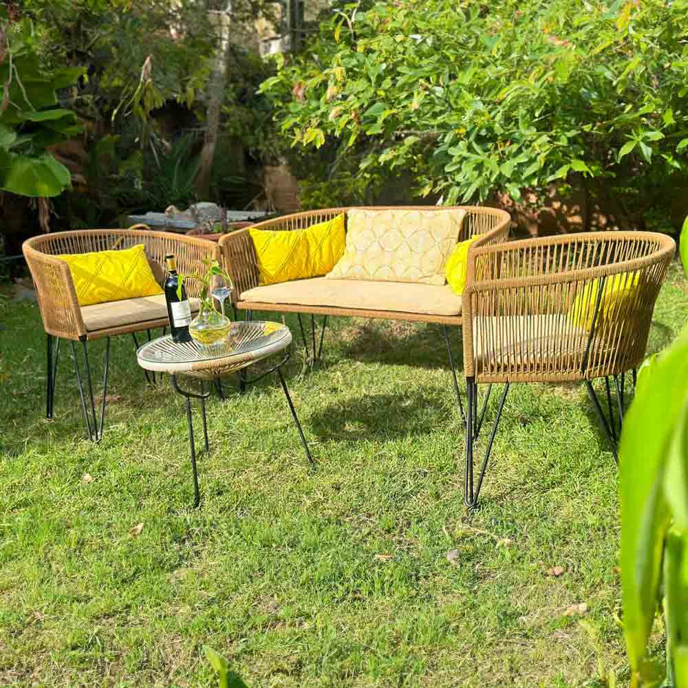 Avec nos chaises Majunga, associez fauteuils et tables basses pour façonner un espace extérieur à la fois élégant et accueillant. Créez votre propre salon de jardin et savourez un coin convivial qui reflète l’authenticité et le savoir-faire artisanal.